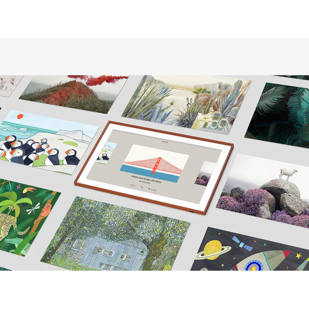 The Frame is a TV with an elegant and modern frame that seamlessly blends into your decor. It not only enhances your space as a TV, it becomes a part of your personal gallery as a work of art.